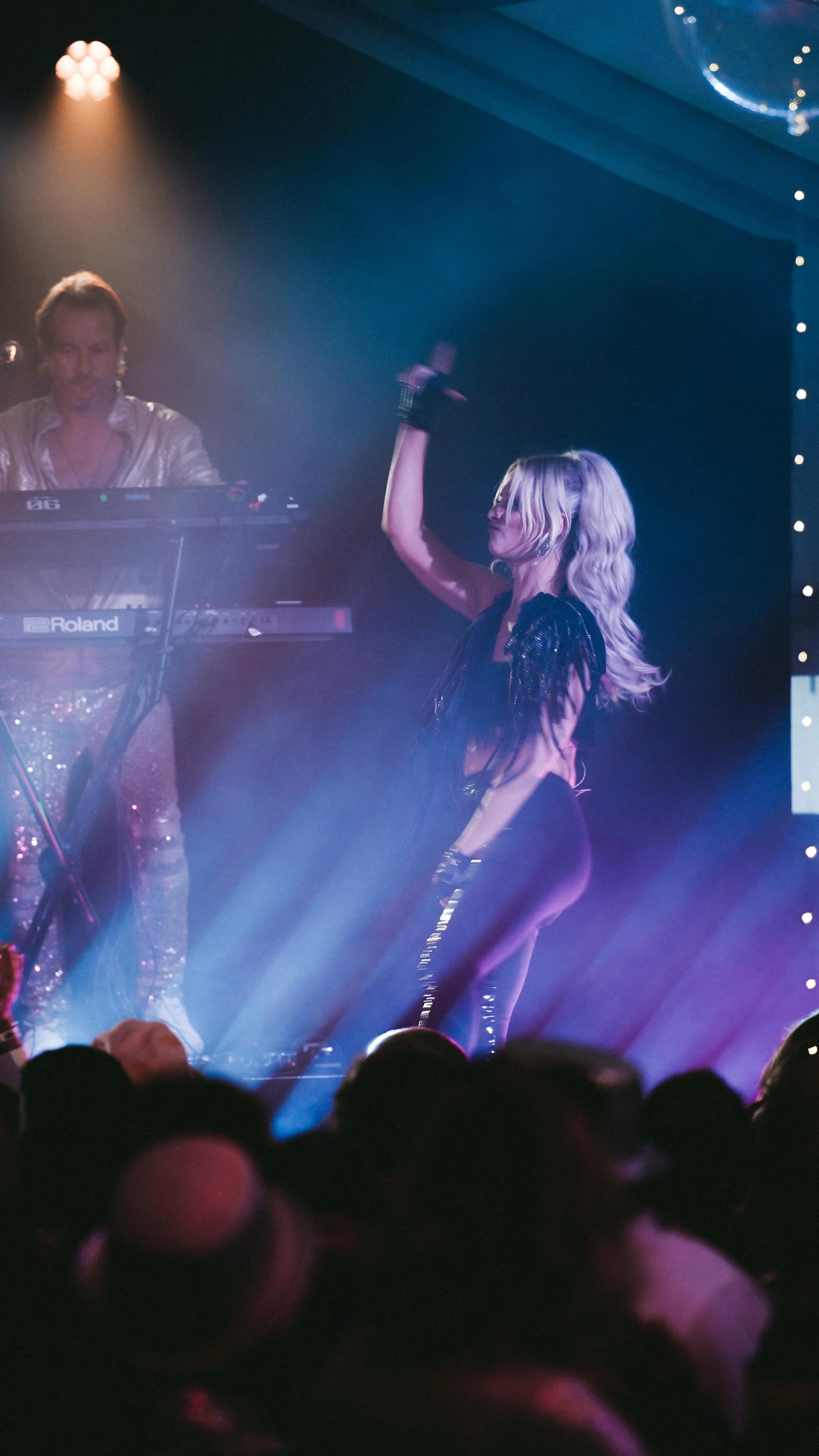 Vi är experter på att skapa stämning och vår underhållning erbjuder en oslagbar mix av hits från alla genrer och årtionden. Allt från klassiska poplåtar till rockiga hits och modern disco – i en snygg och glittrig förpackning. Alltid med en finalsplash i slutet.